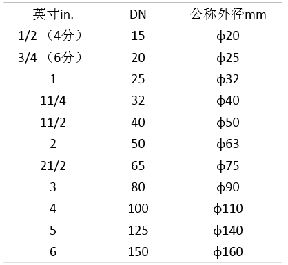• 当设计中均采用公称直径DN表示管径时,应有公称直径DN与相应产品规格对照表。